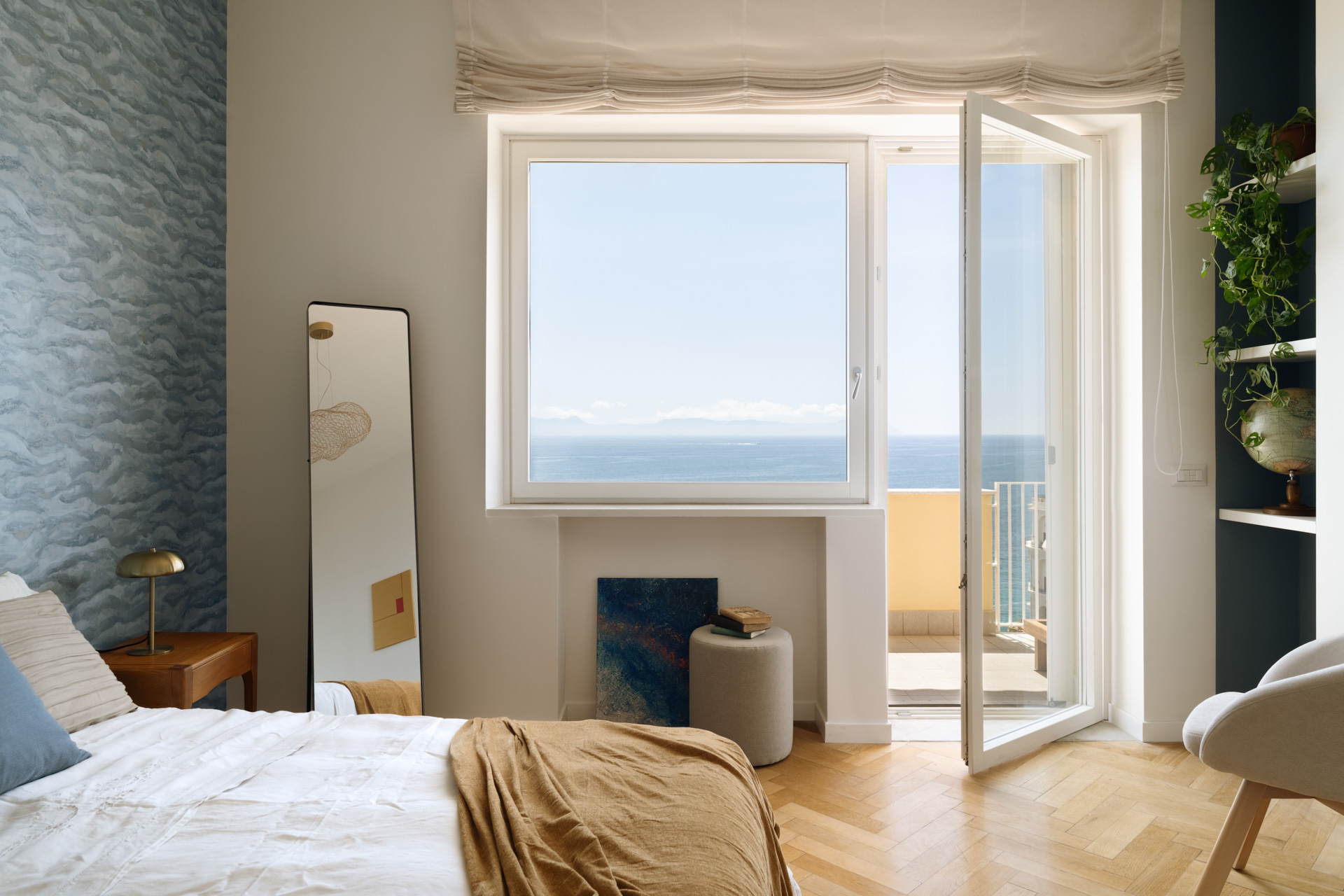 Affacciata su Palazzo Donn’Anna, questa casa è luce e silenzio.