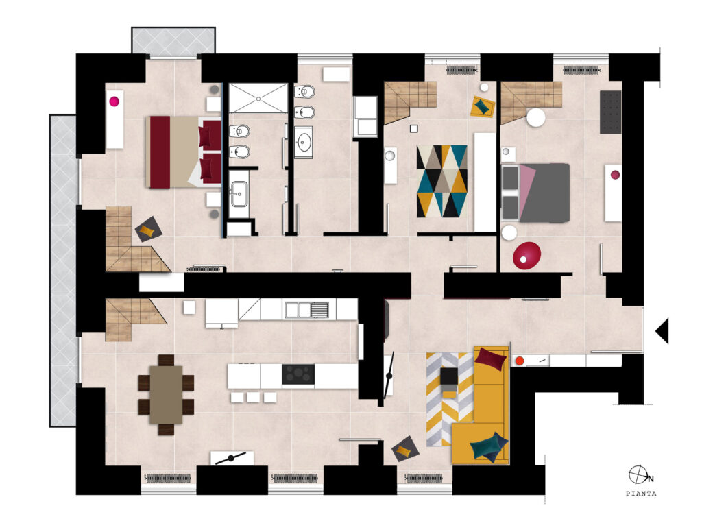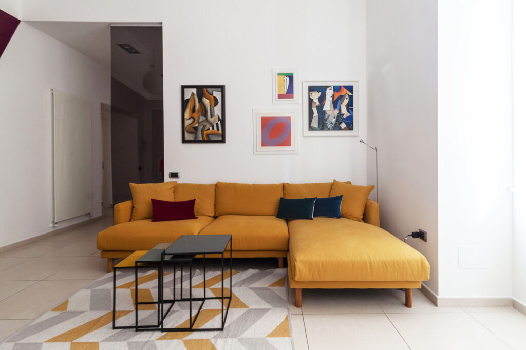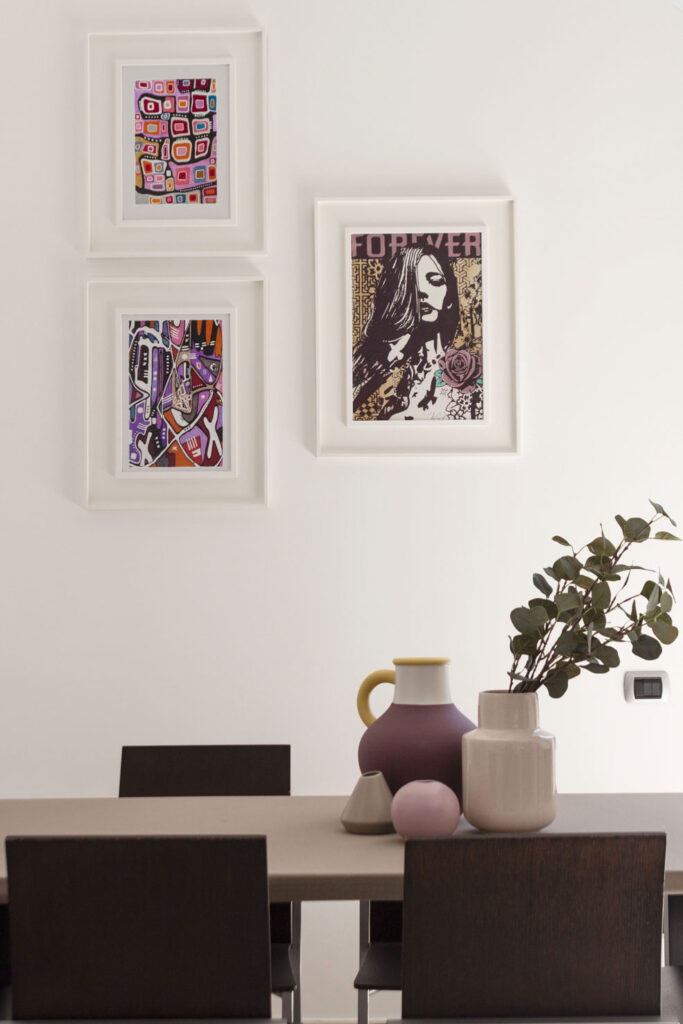La casa, parzialmente arredata e affittata da una coppia, desiderosa di creare un legame più profondo con gli spazi, è stata trasformata attraverso il nostro intervento di relooking. Abbiamo introdotto blocchi di colore e combinato oggetti di design con arredi più semplici, creando un equilibrio tra estetica ricercata e funzionalità. Un tratto distintivo è stato l’allestimento di numerose stampe e tele di arte contemporanea, appartenenti ai committenti, per le quali abbiamo sviluppato un progetto dedicato di posizionamento e valorizzazione.